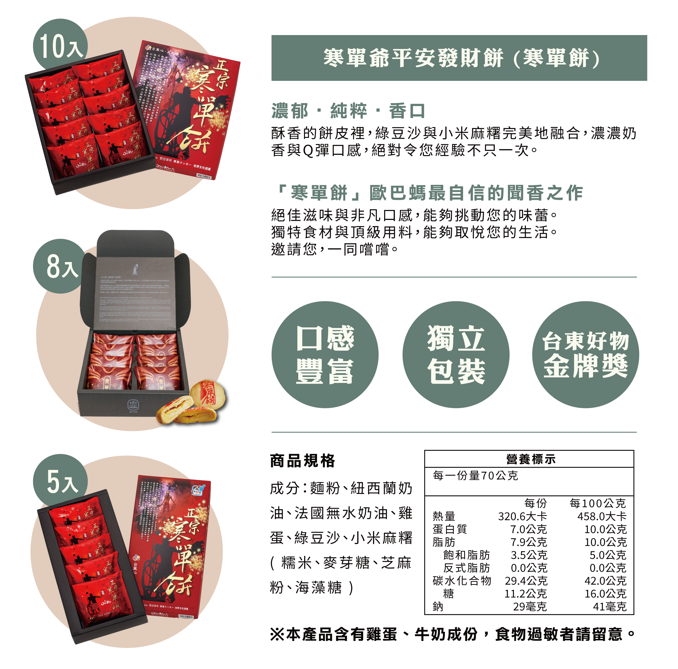 ✅名稱取自於東寒單寒單爺習俗,老闆特別經由擲筊獲得認可,寒單爺神有招財納福保平安之義,希望收到寒單餅的朋友們都能順順利利。